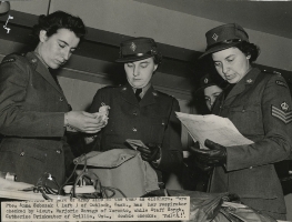 Nous avions un système de fichier alphabétique pour la position sur le continent de chaque homme et de chaque femme de l’armée canadienne. Il fallait le mettre à jour 24 heures sur 24. C’était plutôt intéressant et triste. S’il y avait beaucoup de blessés dans une unité, on savait qui combattait et où. On savait qui était transféré à l’hôpital ou à une autre unité. Nous envoyions des informations pour les rapatriements au Canada, l’information était transmise au parent le plus proche. Nous donnions l’information au bureau de poste s’ils cherchaient une adresse exacte. Nous enregistrions les informations envoyées du front. Les hommes téléphonaient assez souvent des premières lignes, utilisant le système « Able, Baker, Charlie » pour nous transmettre les informations et l’orthographe exacte. Il fallait être vraiment précis. Bien évidemment, les hommes avaient un code bien différent pour A-, B-, C-. Il aurait fallu que je dise « C’est une femme au bout du fil ! »